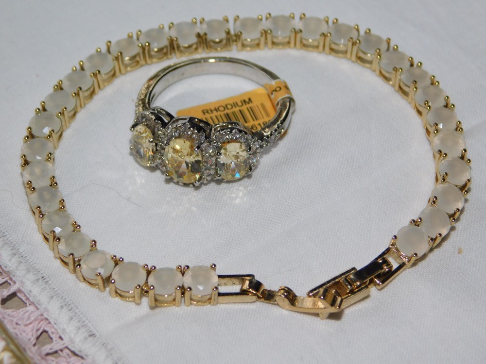 Bratara nouamodel tenis , zirconii ivoire, placata , inel nou asortat