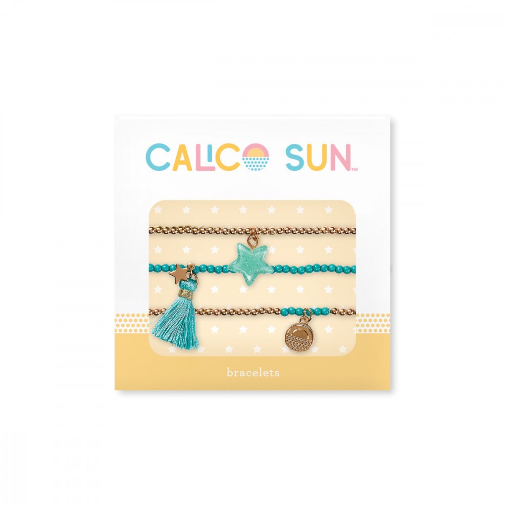 Este un set de bratari preferate de stele. Brelocul stea din rasina verde pastel are sclipici stralucitor incorporat chiar in interior. Gandeste-te la distractie cu acest set de bratari cu margele stratificate, care are un farmec incantator cu stele din rasina cu sclipici. 2 dintre benzile elastice de margele sunt de culoare aurie, iar cealalta verde stralucitor pentru a compensa farmecul stelei. Cu ciucure dragut verde care are un mic accent de stea aurie, plus farmecul mic auriu Calico Sun completeaza acest set de bratari cu margele stratificate. Toate cele 3 bratari sunt pe benzi elastice pentru a asigura o potrivire perfecta. La fel de distractiv de purtat atunci cand este asociat cu colierul Sophia Star. , Bratari cu stele , Set de 3 bratari stratificate , Bratari cu margele multicolore cu ciucuri si rasina cu sclipici , Banda elastica , Potrivita pentru varsta de 3 ani in sus Dimensiune cutie cm: 0.64 X 10.16 X 10.16 Greutate: 16 grame Nu este potrivit pentru copiii sub 3 ani din cauza pieselor mici. Pericol de sufocare.