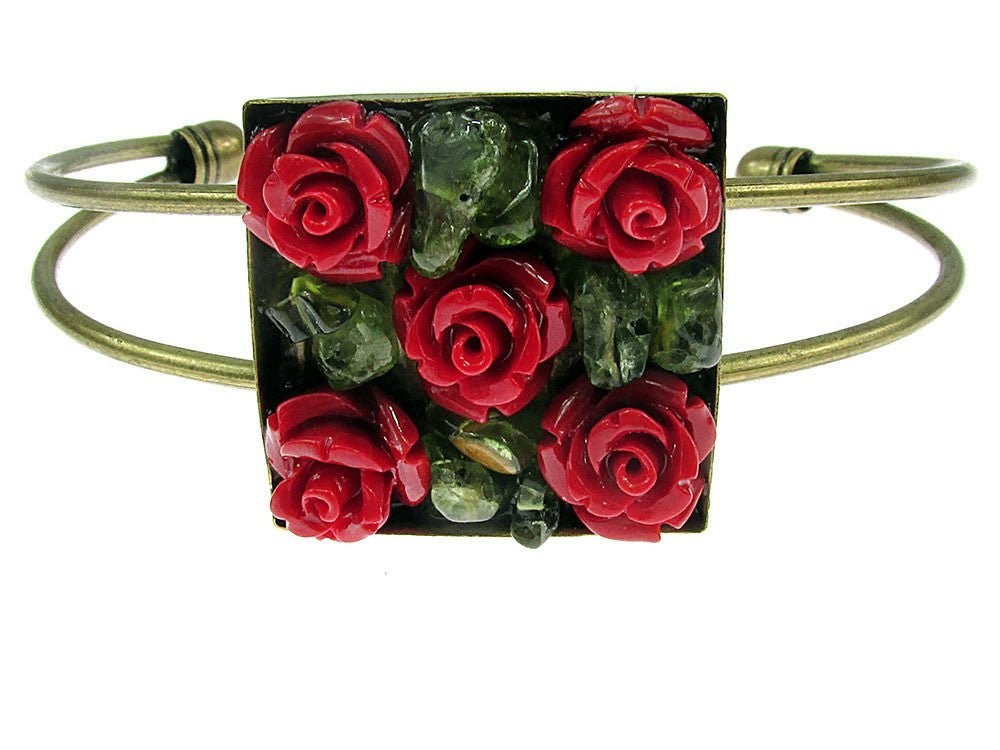 Decorat cu: trandafiri coral reconstruit si chipsuri peridot