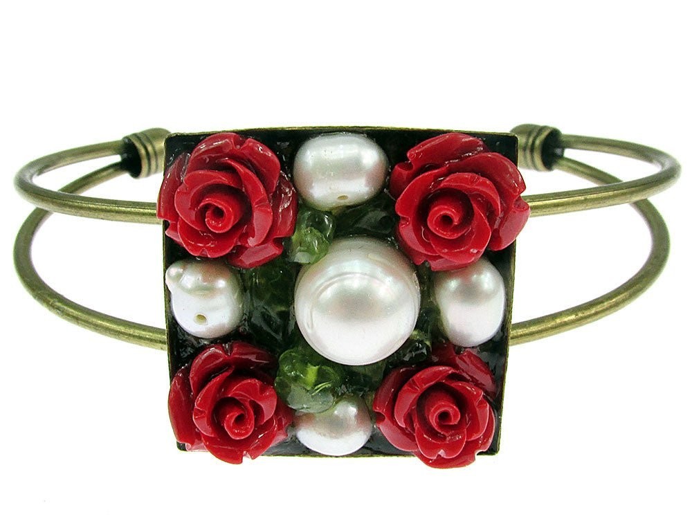 trandafiri coral, perle si peridot
