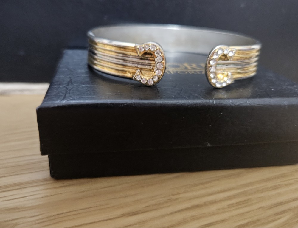 Bratara vintage tip Coco Chanel,detalii aurite și argint.
