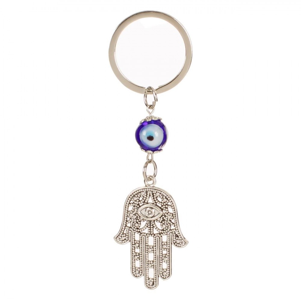 Breloc Metal, Model Fatima cu Ochi Rotund, Argintiu, 9.5cm