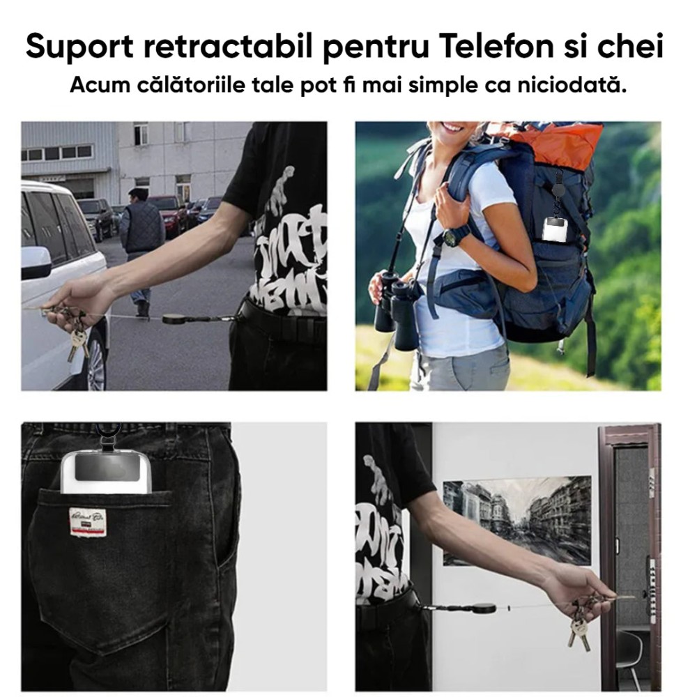 Acest suport retractabil este solutia practica pentru cei care vor sa aiba obiectele esentiale mereu la indemana. Poate fi folosit pentru chei, telefon sau legitimatie, facandu-l ideal atat pentru birou, cat si pentru calatorii, drumetii sau activitati zilnice. Datorita designului inteligent cu carabina si fir retractabil, il poti atasa usor de buzunar, curea sau rucsac, fara sa mai scotocesti de fiecare data dupa lucruri.