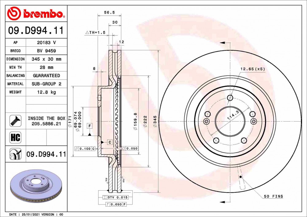BREMBO 09.D994.11 PRIME LINE - UV Coated Disc frana