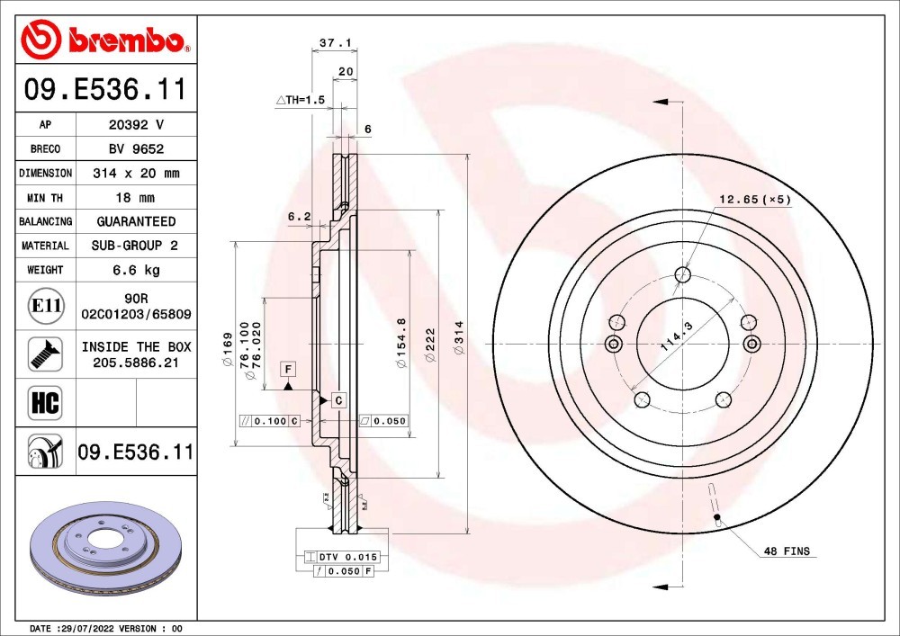 BREMBO 09.E536.11 PRIME LINE - UV Coated Disc frana