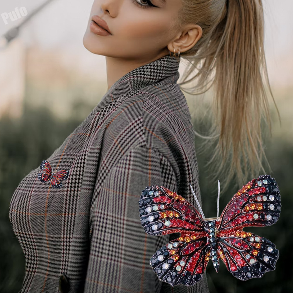 Brosa dama eleganta in forma de fluture cu pietricele colorate, Royal butterfly, rosu