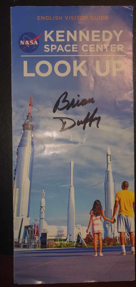 Brosura NASA Kennedy Space Center cu autograf original astronaut Brian Duffy.