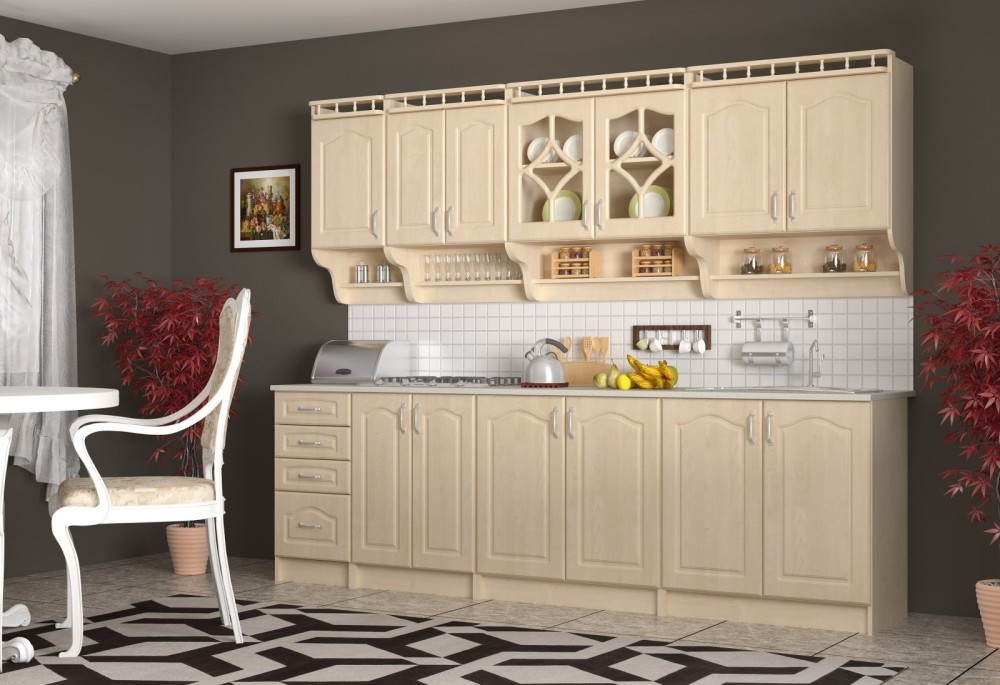 Bucatarie Korona Mebel MDF 2.6m Mesteacan, Blat Intreg