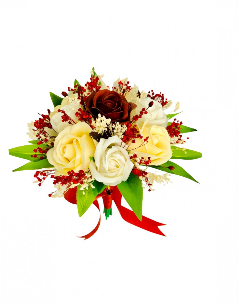 Buchet mic personalizabil cu trandafiri si floarea miresei (Grena, Multicolor)