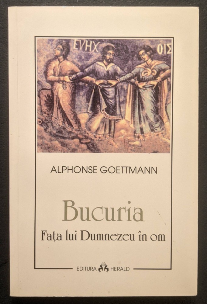 ✝ BUCURIA. FATA LUI DUMNEZEU IN OM – Alphonse Goettmann 222 pag 2000 Editura HERALD Brosata Stare: prezinta text subliniat