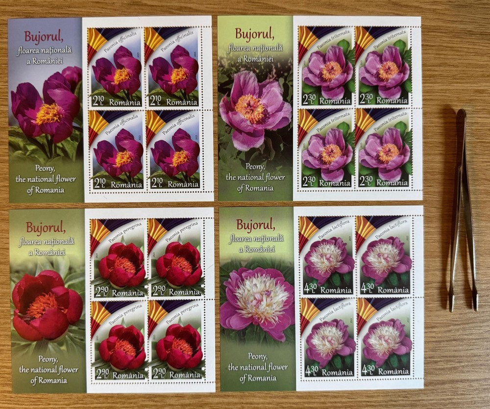 Bujorul, floarea nationala a Romaniei, minicola de 4 timbre cu manseta 2023 LP 2418c