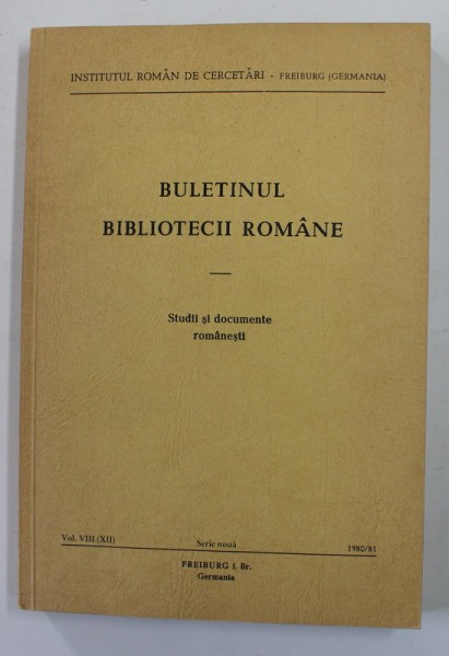 BULETINUL BIBLIOTECII ROMANE - STUDII SI DOCUMENTE ROMANESTI - VOLUMUL VIII . SERIE NOUA , 1980 - 1981