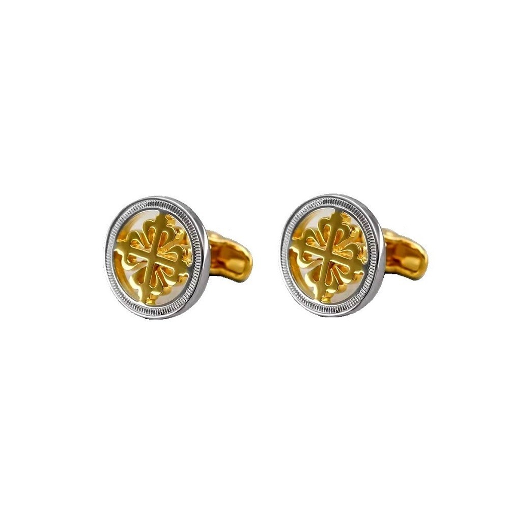 Un accesoriu sofisticat ce îmbină armonios eleganța clasică cu un detaliu modern. Finisajul predominant auriu, înconjurat de o margine subtilă argintie, conferă butonilor o prezență elegantă și rafinată. Această combinație cromatică versatilă adaugă profunzime și caracter ținutelor formale sau business.
