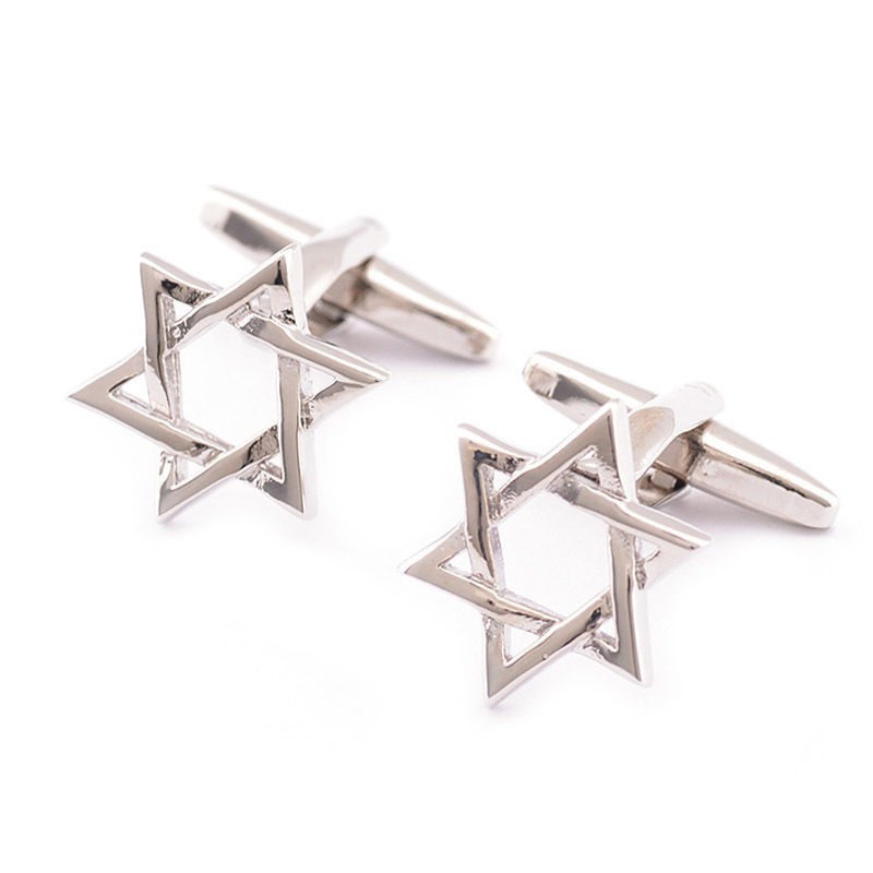 Butoni camasa argintii in forma de STEA metalici + cutie simpla cadou
