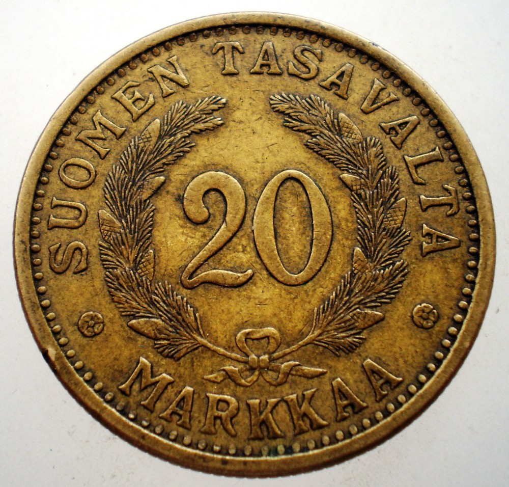 KM# 32, 20 MARKKAA 13g., Aluminum-Bronze, 31mm.