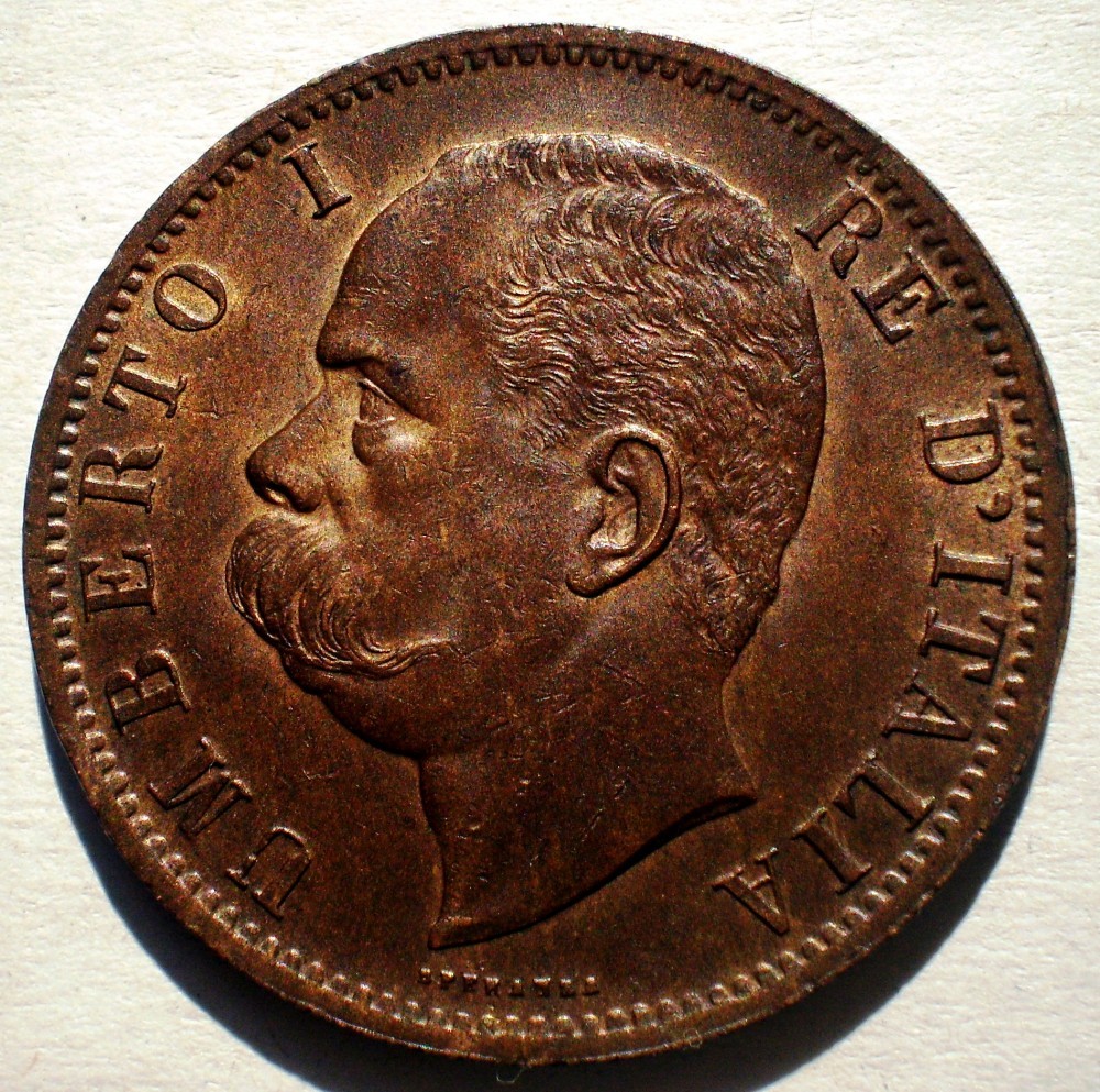 KM# 27.1, 10 CENTESIMI, Copper. Ruler: Umberto I.