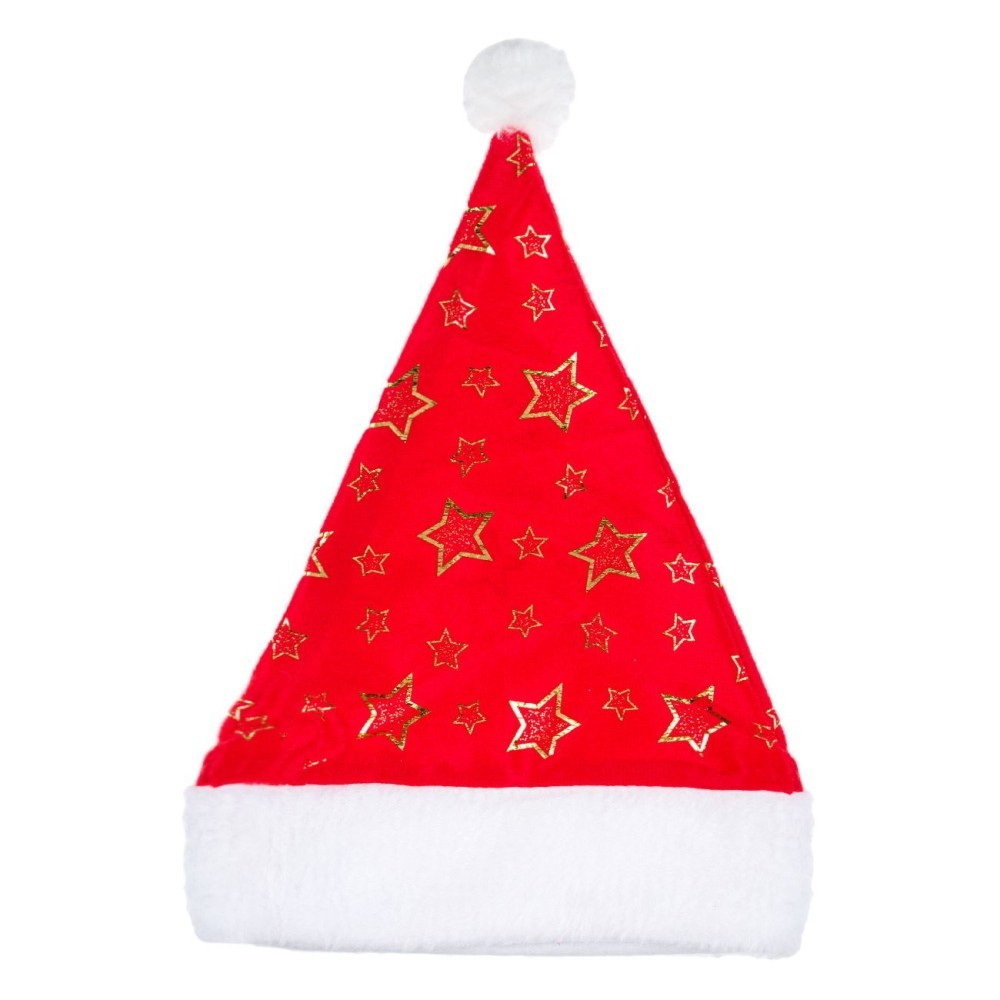 Căciulă Crăciun, Model Stele Aurii, Culoare Roșu Alb, Dimensiune 36x25cm, Poliester