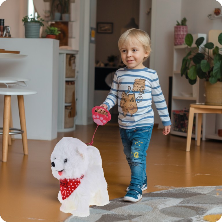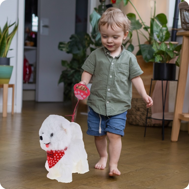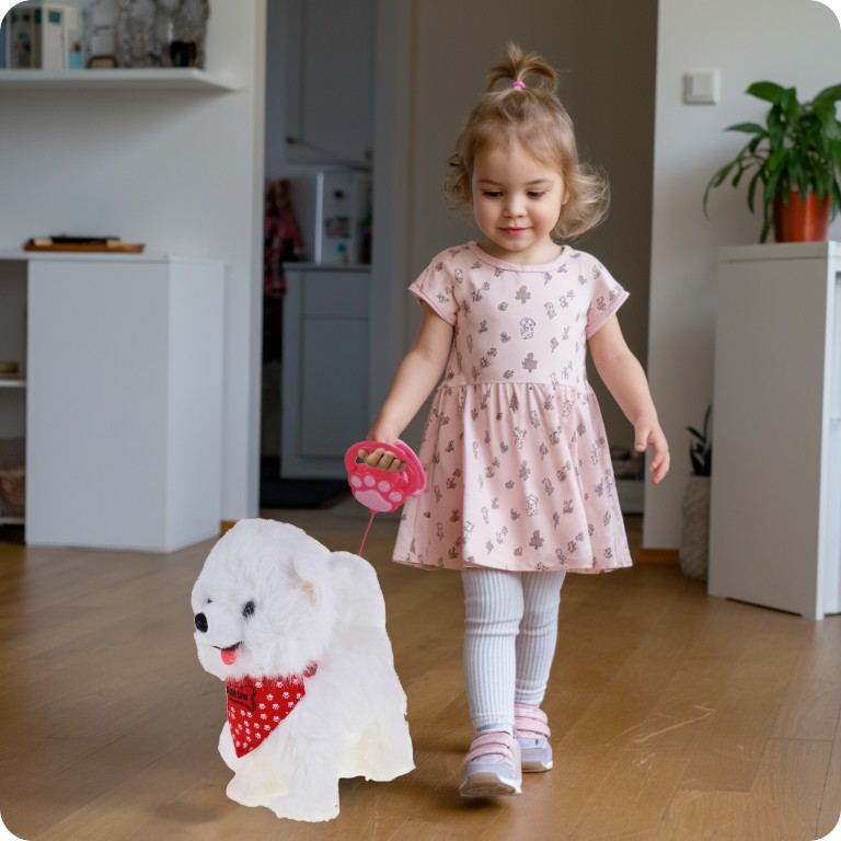 ➡️Câine interactiv Fabricat din materiale durabile și plăcute la atingere.