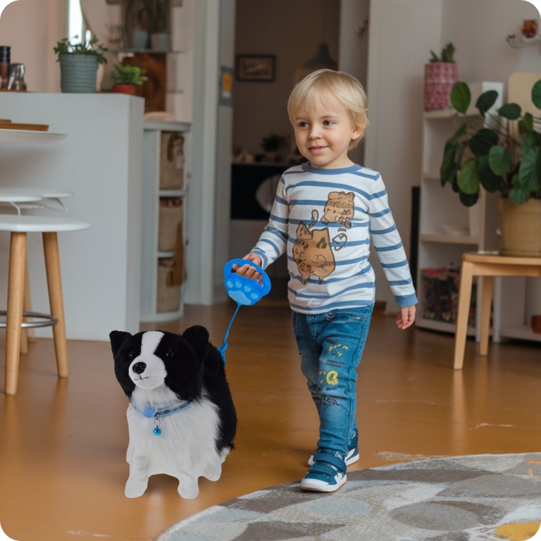 ➡️Câine interactiv Fabricat din materiale durabile și plăcute la atingere.