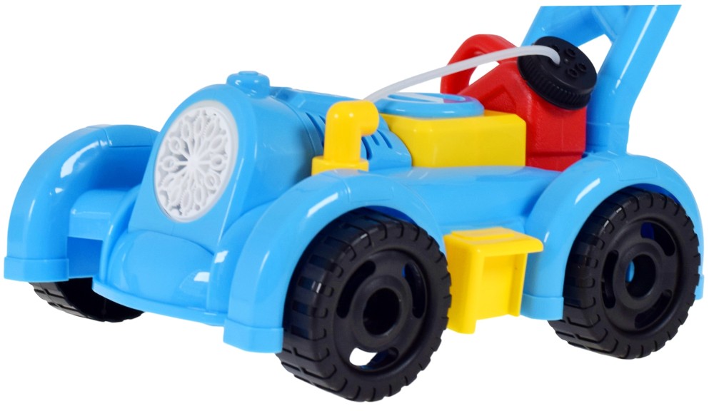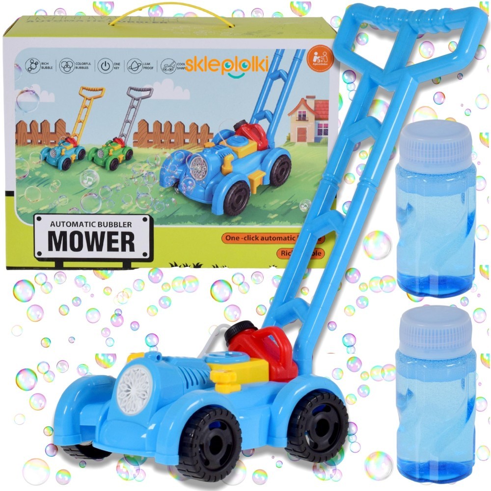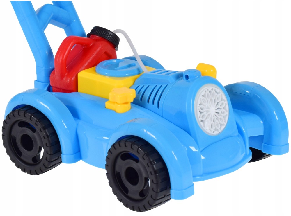 - Mașina de tuns iarba combină bucuria de a sufla bule cu distracția de a imita munca adulților.