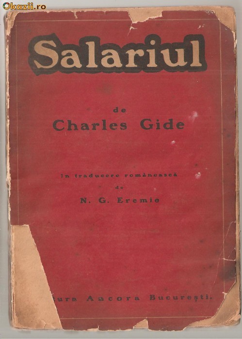 (C1179) SALARIUL DE CHARLES GIDE, EDITURA ANCORA, BUCURESTI, 1923, TRADUCERE DE N. G. EREMIE