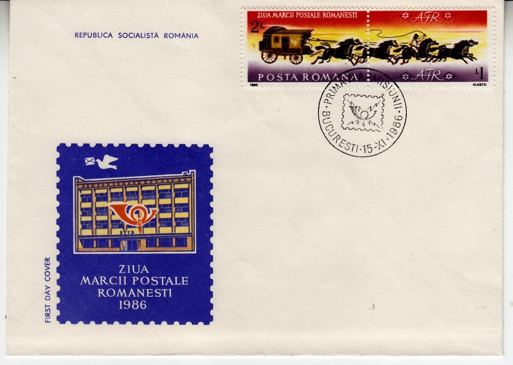 C12 - FDC Romania - Ziua marcii postale - cu vinieta - LP1170A - 1986