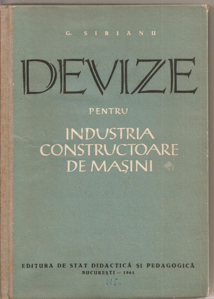 (C2185) DEVIZE PENTRU INDUSTRIA CONSTRUCTOARE DE MASINI DE G. SIBIANU, EDP, BUCURESTI, 1961