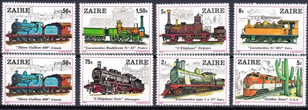 C2679 - Congo(Zaire|) 1980 - Trains 8v.nestampilate MNH