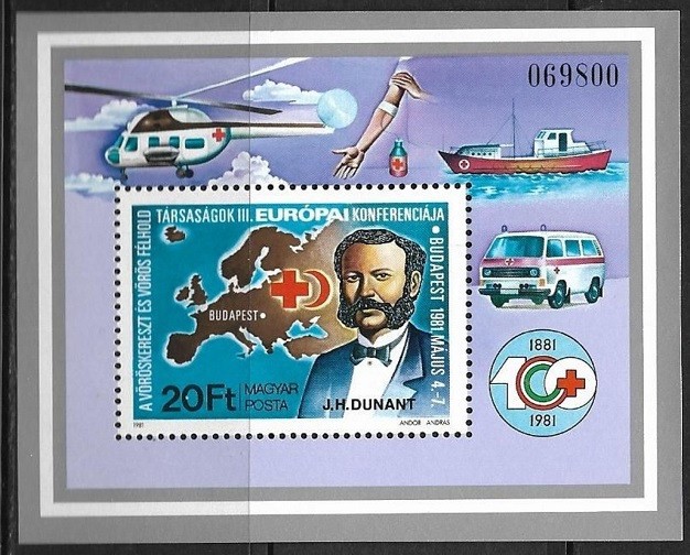C3050 - Ungaria 1981 - Crucea Rosie colita neuzat,perfecta stare