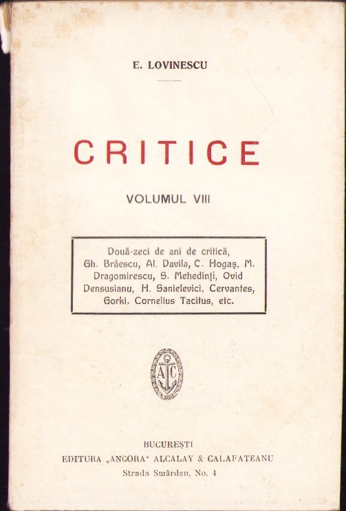 Critice de Eugen Lovinescu, volumul VIII,