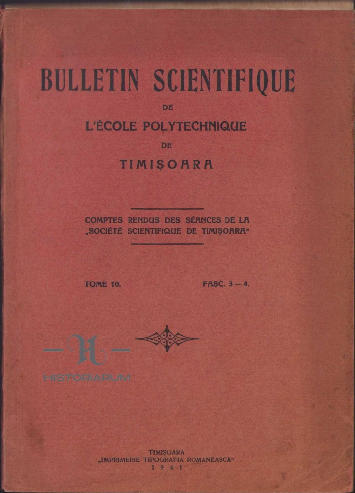 C70 Bulletin scientifique de l’ecole polytechnique de Timișoara, numerele 3-4/1941