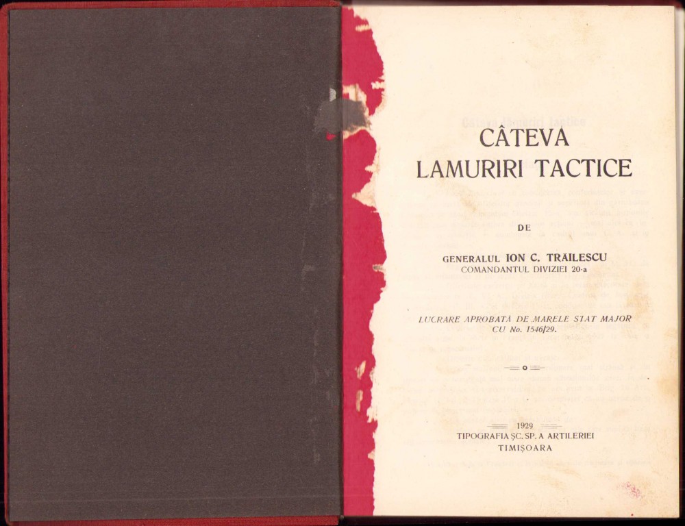 C834 Câteva lămuriri tactice de generalul Ion C Trăilescu, comandantul Diviziei 20-a, 1929, Tipografia Școlii Speciale a Artileriei, Timișoara