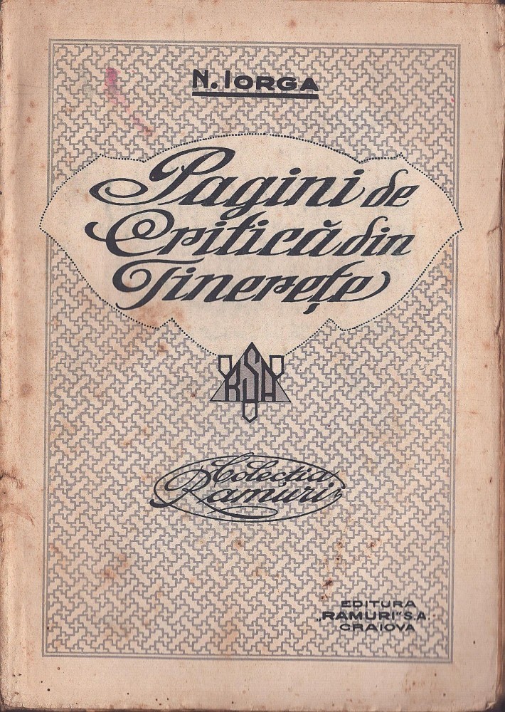 C8426N Pagini de critică din tinerețe de Nicolae Iorga, fără an, Craiova