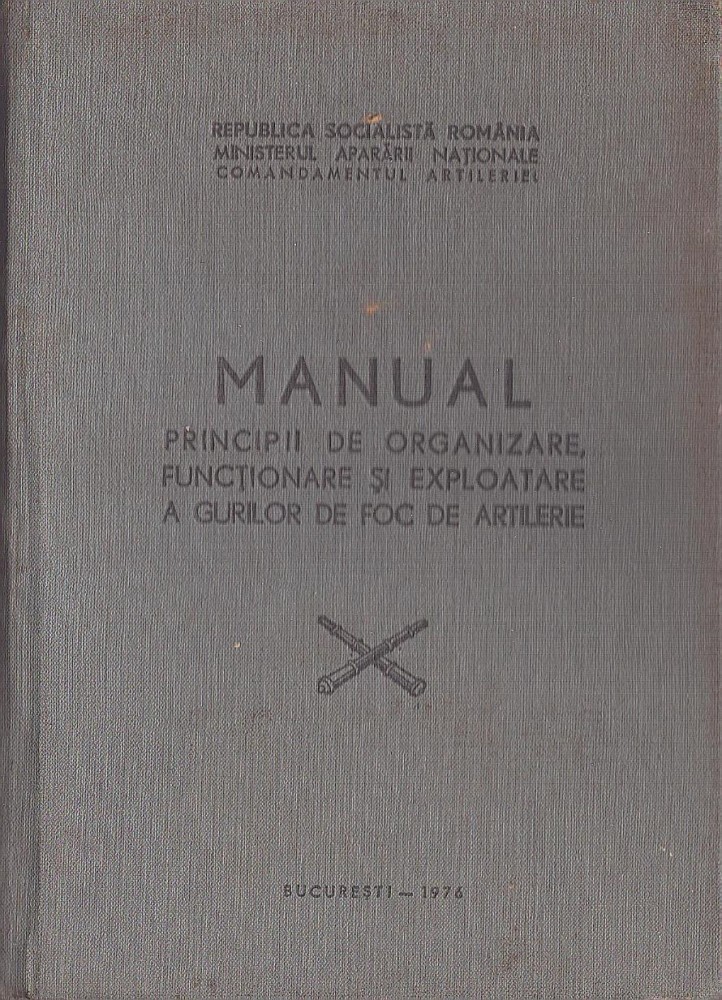 Manual principii de organizare, funcționare și exploatare a gurilor de foc de artilerie, 1974.