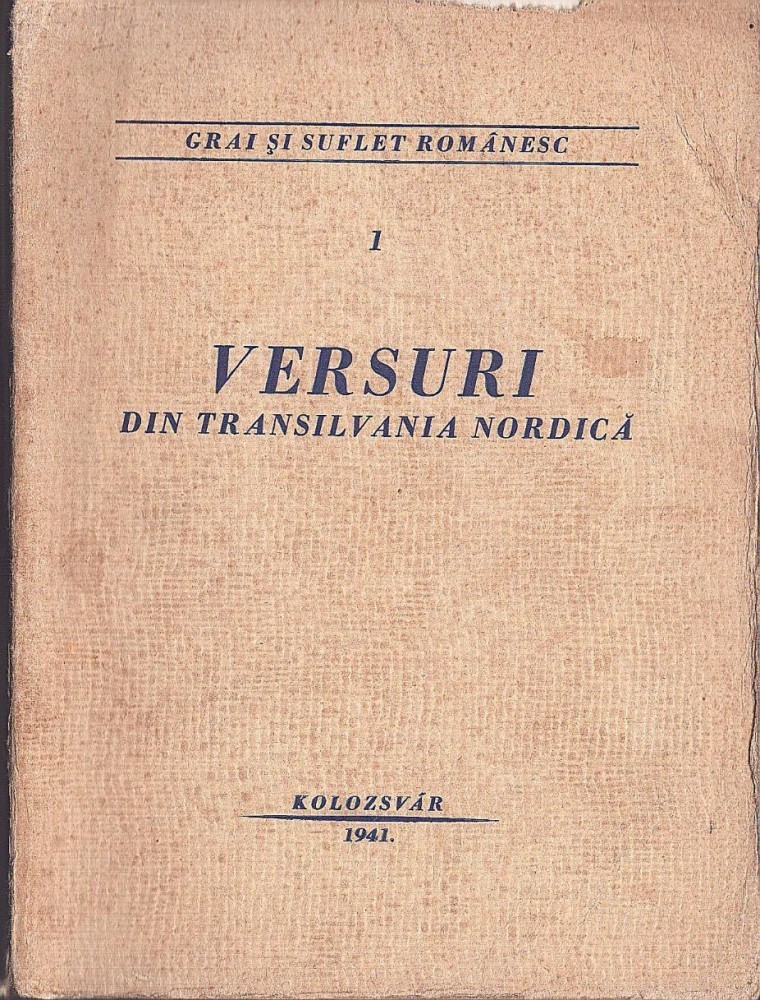 Versuri din Transilvania nordică, 1941, Cluj, ediție îngrijită de Gheorghe Dăncuș, exemplar special, nr 26, pe hârtie cromată.