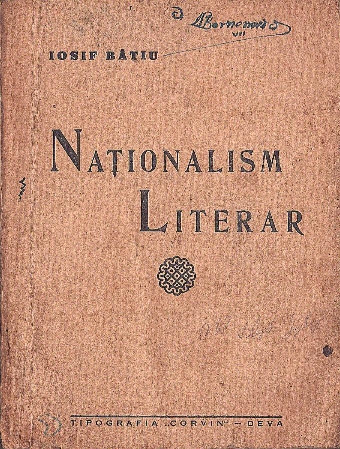 C8455N Naționalism literar, o privire sumară asupra literaturii naționaliste românești de Iosif Bâtiu, cu un prolog de dr Ilie Dăianu, 1941, Deva