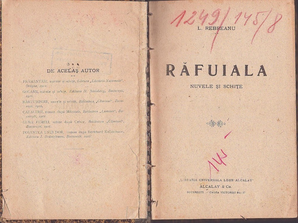Răfuiala, nuvele și schițe de Liviu Rebreanu, ediția I, 1919,