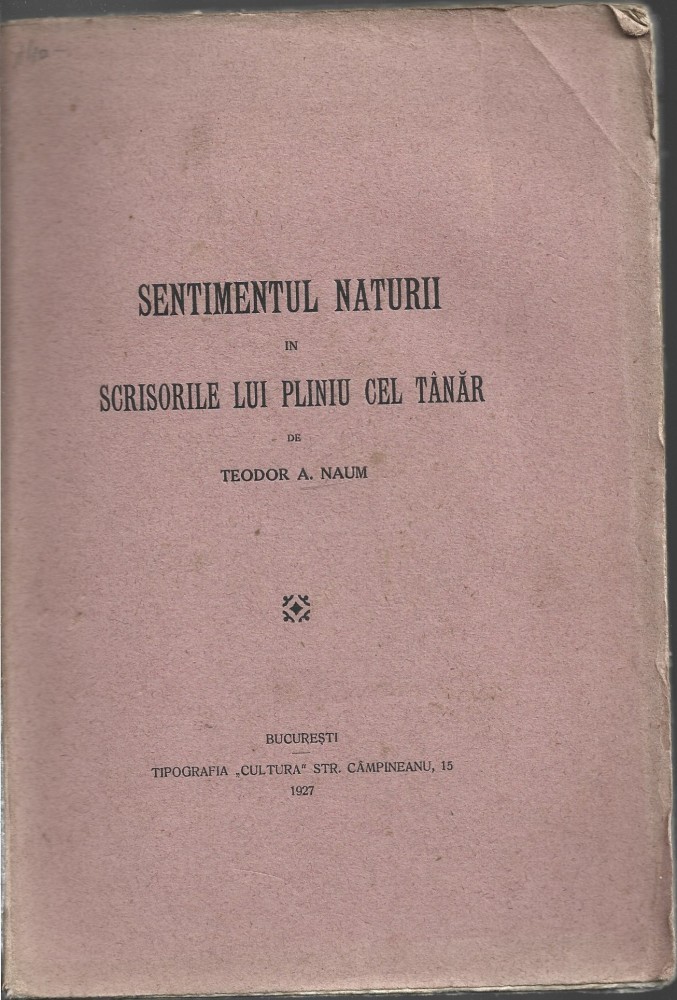 C9092N Sentimentul naturii în scrierile lui Pliniu cel Tânăr de Teodor Naum, 1927