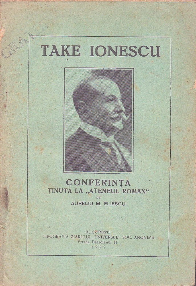 C9111N Take Ionescu, conferință ținută la Ateneul Român de Aureliu M Eliescu, 1929