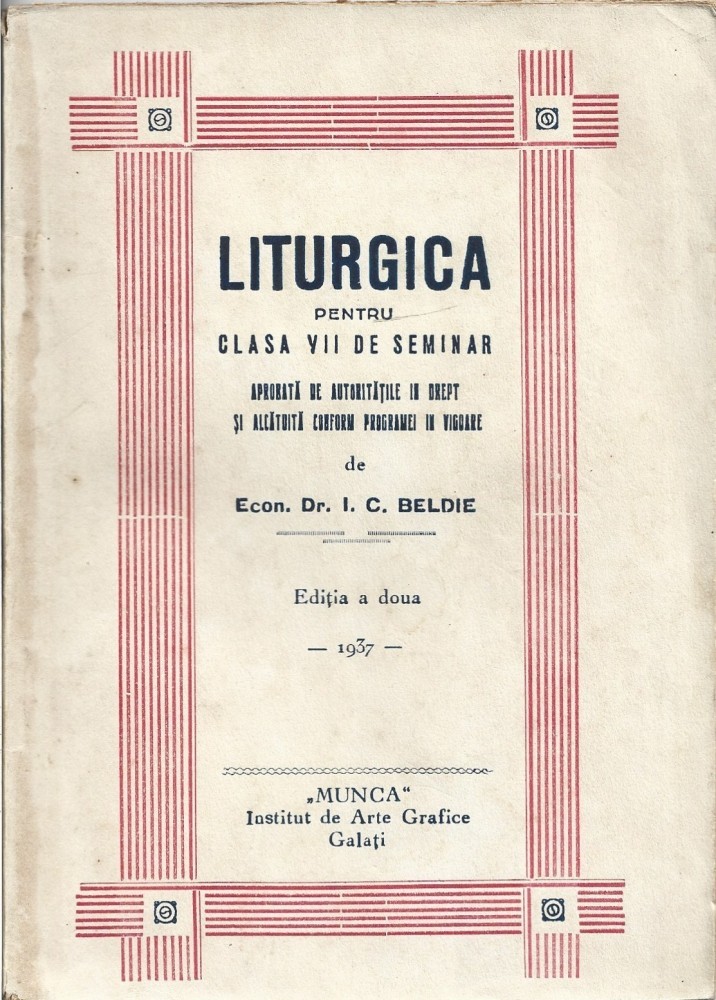 C9127N Liturgica pentru clasa VII de seminar de I C Beldie, 1937, Galați