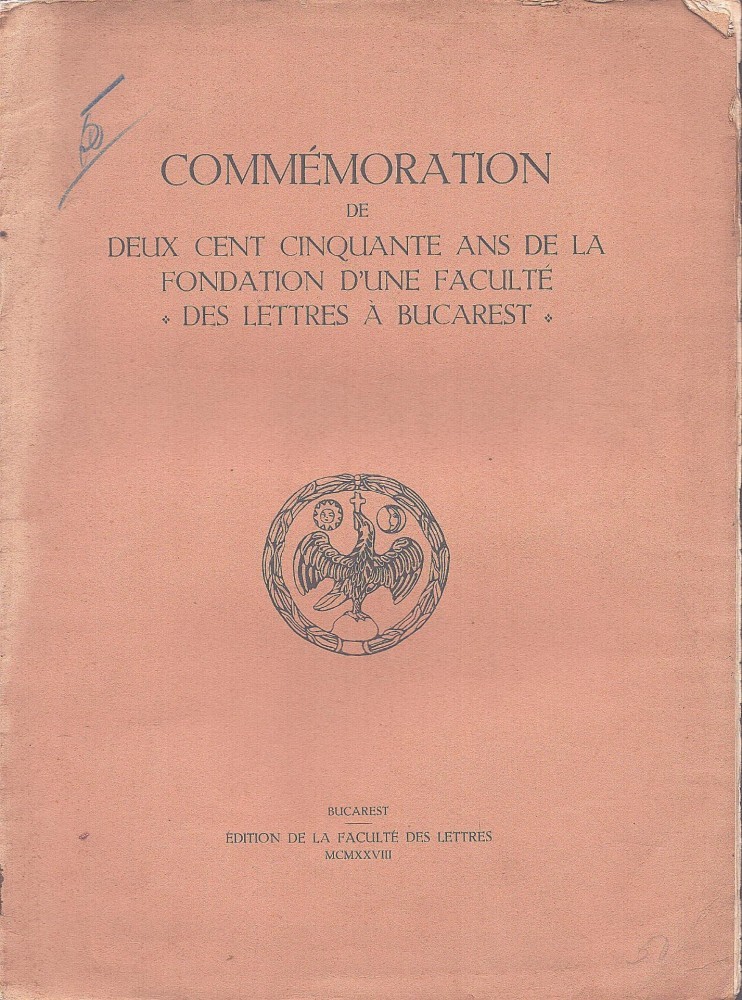 C9158N Commémoration de deux cent cinquante ans de la fondation d’une faculté des lettres à Bucarest, 1928, Bucarest