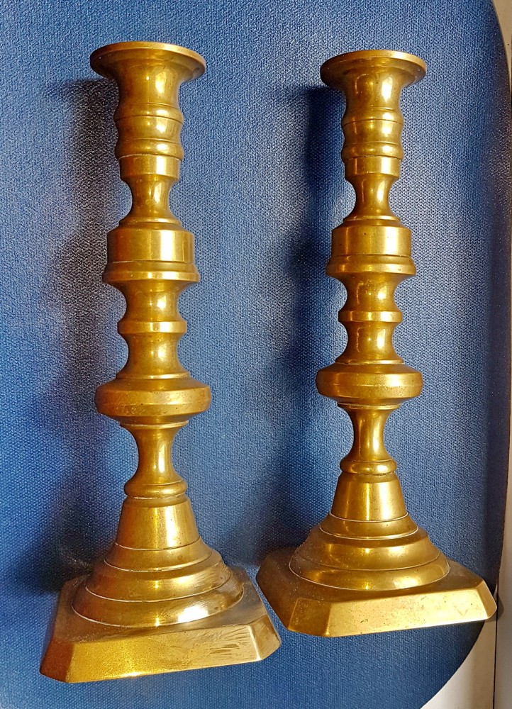 C928-Set 2 Sfesnice stil Biedermeier anii 1900 bronz masiv aurit.