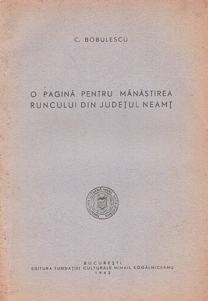 C9325N O pagină pentru Mânăstirea Runcului din județul Neamț de Constantin Bobulescu, 1942