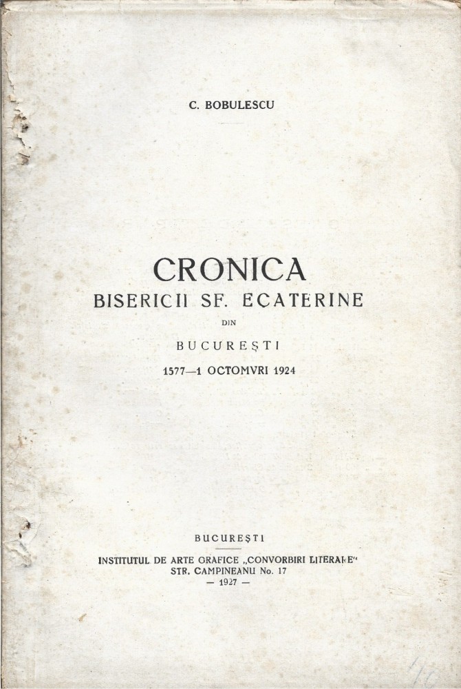 C9334N Cronica bisericii Sf Ecaterine din București 1577 - 1 octomvri 1924 de Constantin Bobulescu, 1927