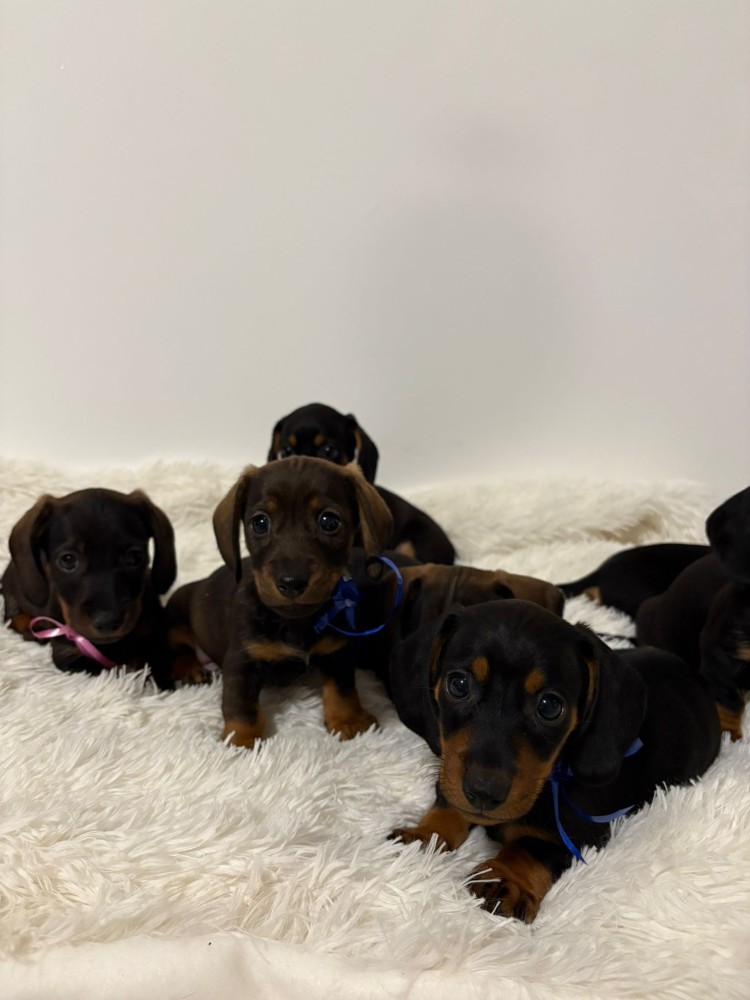 Cățeluși rasă Teckel cu pete de foc își caută stăpâni iubitori.