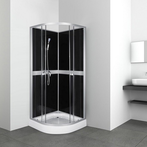 Cabină de duș CLASSIC 80 BLACK cu perete posterior, cu cădiță și baterie