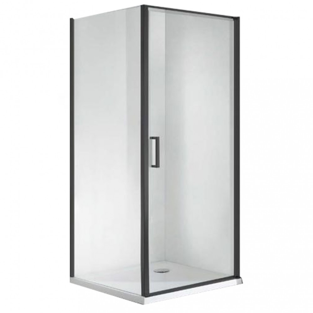 Cabină de duș pătrată Quadrum Black cu 1 ușă, cu finisaj Easy Clean, fără cădiță de duș