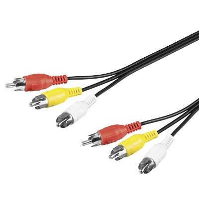 Cablu 3 x RCA la 3 x RCA 3 metri lungime, audio video RCA, cablu 3 RCA tata la 3 RCA tata. Cablu conector audio / video compozit; 3x RCA, 3 tata RCA - 3 tata RCA, pentru conectarea dispozitivelor cu un conector audio / video compozit, 1x video, 2x audio L / R, Tipul conexiunii 3x tata RCA, conexiunea 2, tip 3x tata RCA, conexiune, material de contact, placat cu nichel, lungimea cablului 3 m, tipul cablului cablu rotund, marcaje CE, DEEE. Accesoriu: Cablu Tip conexiune: 3 x RCA⇔3 x RCA Conector: RCA A Conector: 3 x RCA tata B Conector: 3 x RCA tata Lungime: 3 m Marca: Goobay Garantie: 24 luni persoane fizice / 12 luni persoane juridice