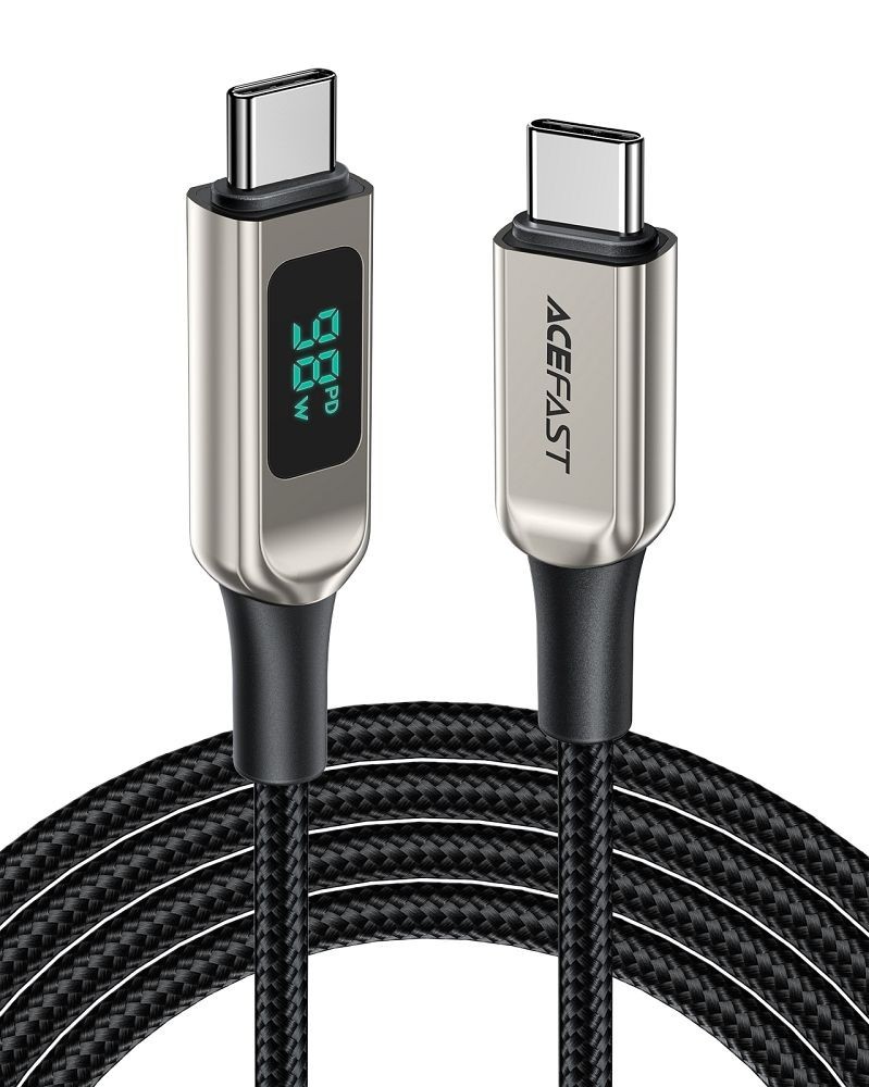 Cablul Acefast Type-C la Type-C este soluția ideală pentru cei care doresc performanță și eficiență maximă. Cu o putere de până la 100W și un ecran LCD care arată viteza de încărcare, acest cablu este perfect pentru toate dispozitivele tale.