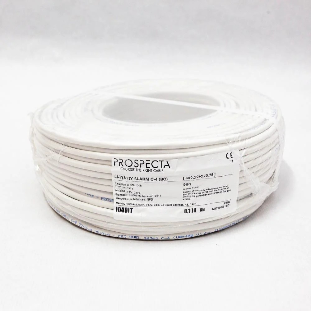 Cablu alarma 6 x 0.22 + 2 x 0.75 premium, cupru 100%, cod: I049IT, Li-Y (ST)Y, made in Italy, utilizare pentru sisteme de alarma, manta exterioara PVC alb, ecranare: folie de aluminiu laminata, raza de curbura 10x diametru, Peak Operating Voltage 250, Voltage Rating Uo/U 400, Test Voltage 2000, standarde: CEI-UNEL36762 C-4 (U0=400 V), EN 50575, Euroclass Eca, rola 100 metri